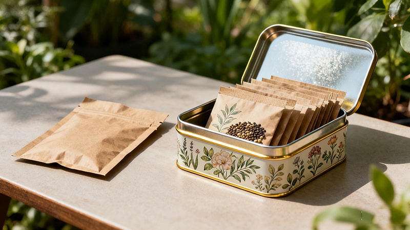 If your brand emphasizes sustainability, minimalist tin boxes are a great choice. A clean, eco-friendly seed gift packaging design with subtle engraving or a single-color logo sends a strong message of authenticity and environmental care. These tins are reusable and recyclable, aligning perfectly with modern green marketing values.